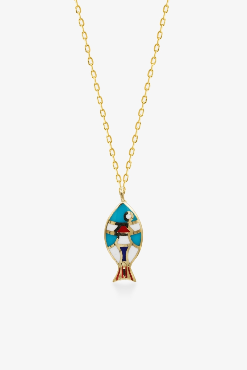 Renkli Balık Kolye ürünümüzün ağırlığı 1,45 Gram olup 14 Ayar Altındır.